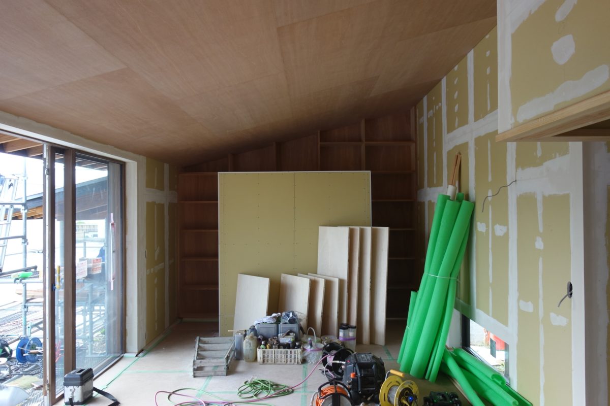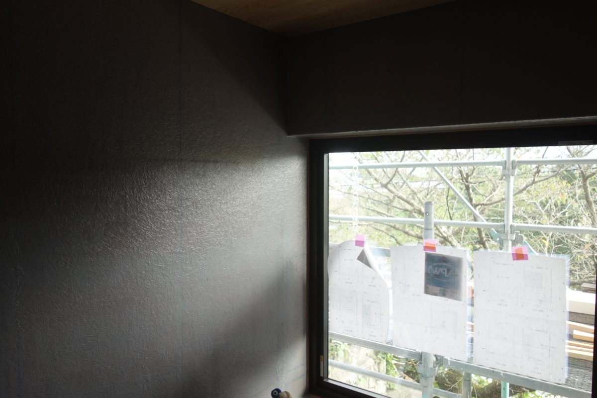2025.10.09 表情 |葉山の家| 上山の新築現場、外壁の杉板を張っているところ。 濃い色にしたので、とても引き締まった表情になります。 内部はクロスを張る前の下地処理中。 天井のラワンベニヤが、奥の本棚までつながっていくように見えます。 浴室内のFRP防水が施され、鈍い光が反射しています。 このままでも悪くない表情ですが、これから仕上げのタイル張りを行います。 山の緑を背負って、建物の色がとても馴染んで見えます。 [ 東北|山形|一級建築士事務所|井上貴詞建築設計事務所 ] Tweet